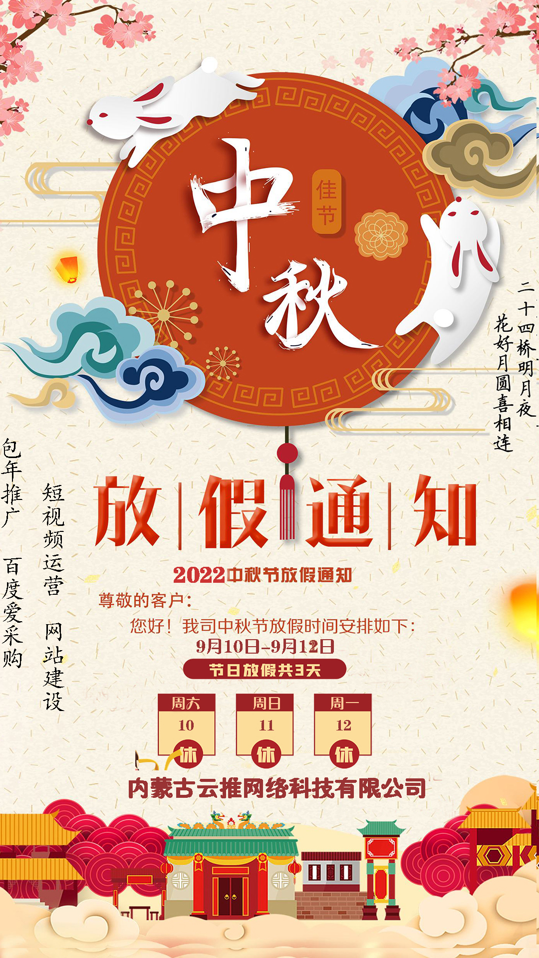 内蒙古云推网络祝您中秋节快乐,吉祥如意总绵连。
